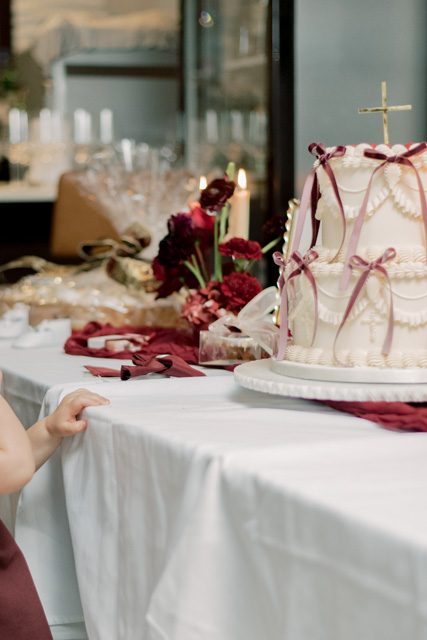 Burgundy tones symbolized devotion, love, and depth — a perfect palette for a baby dedication. From the florals to the tablescape details, everything felt cohesive and intentional, allowing the beauty of the day to unfold naturally.