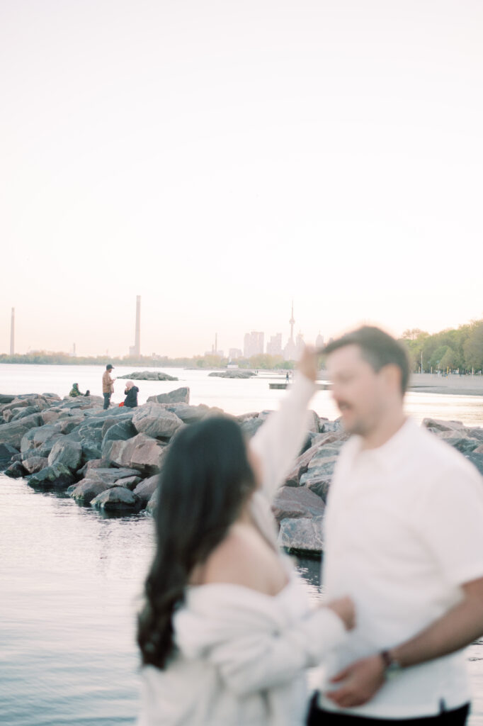 This couple chose two of Toronto’s most quietly magical locations—RC Harris Water Treatment Plant and Silver Birch Beach—for their engagement session, and the result was pure poetry.